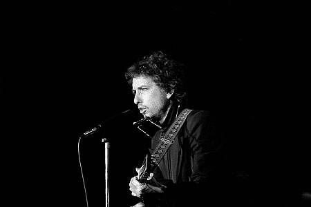 Bob Dylan performing at Nassau Coliseum, New York, 1974.
