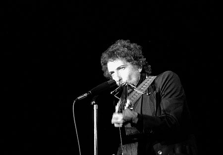 Bob Dylan performing at Nassau Coliseum, New York, 1974.